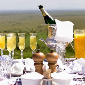 After approximately one hour in the sky, the balloon begins its descent, guided by skilled pilots. The landing is smooth, often followed by applause from exhilarated passengers. The experience doesn’t end here, though—your adventure continues with a champagne breakfast served in the bush. Imagine feasting on fresh fruits, pastries, eggs, and more while surrounded by the untamed beauty of the Serengeti. It’s the perfect way to toast to an extraordinary morning.